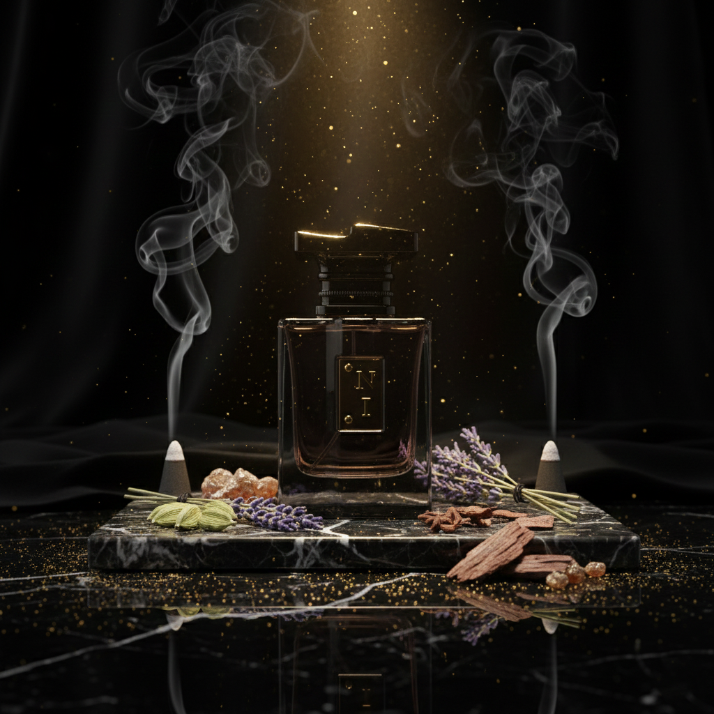 Cœur : Lavande, cèdre — a warm, aromatic heart that exudes refined elegance and subtle depth.