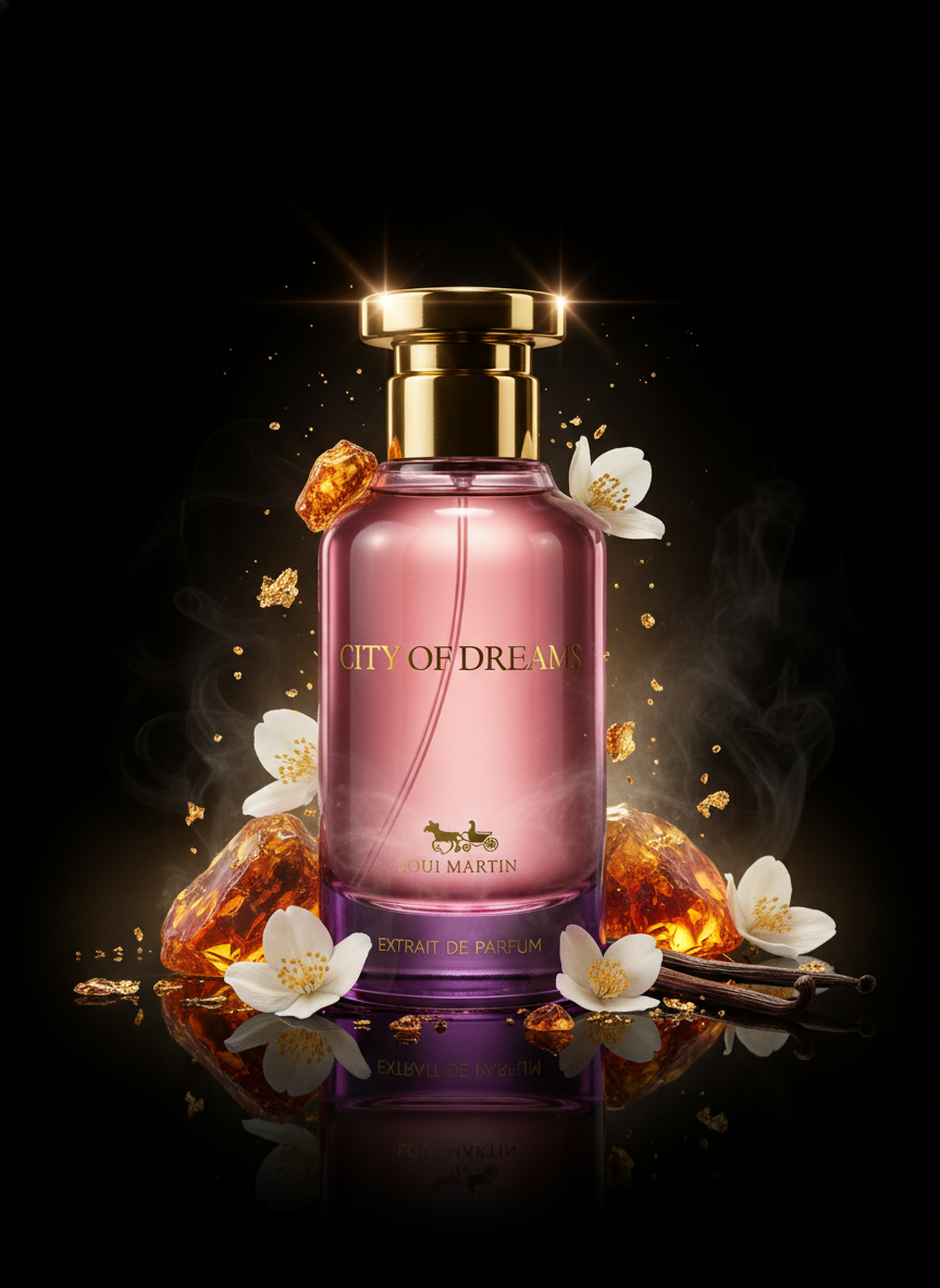 Loui Martin City of Dreams est un parfum unisexe envoûtant, fusion parfaite de fraîcheur, d'éclat et de sensualité. Conçu pour les rêveurs et les romantiques, il incarne une élégance discrète et affirmée, idéale pour les soirées, les moments précieux ou les rendez-vous romantiques.